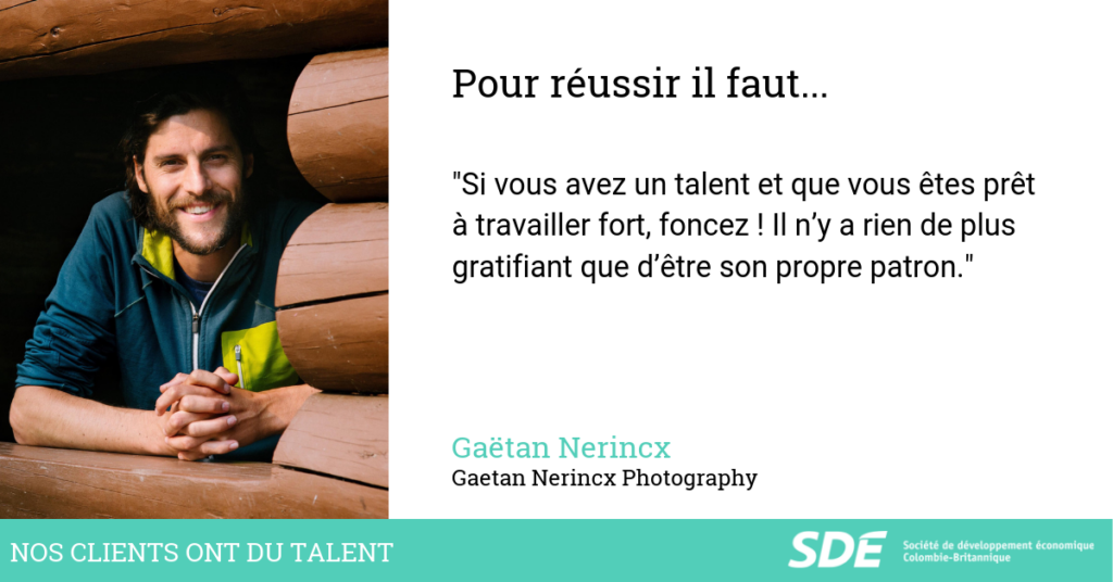 Gaëtan, installé en Colombie-Britannique a décidé de lancer son entreprise de photographie